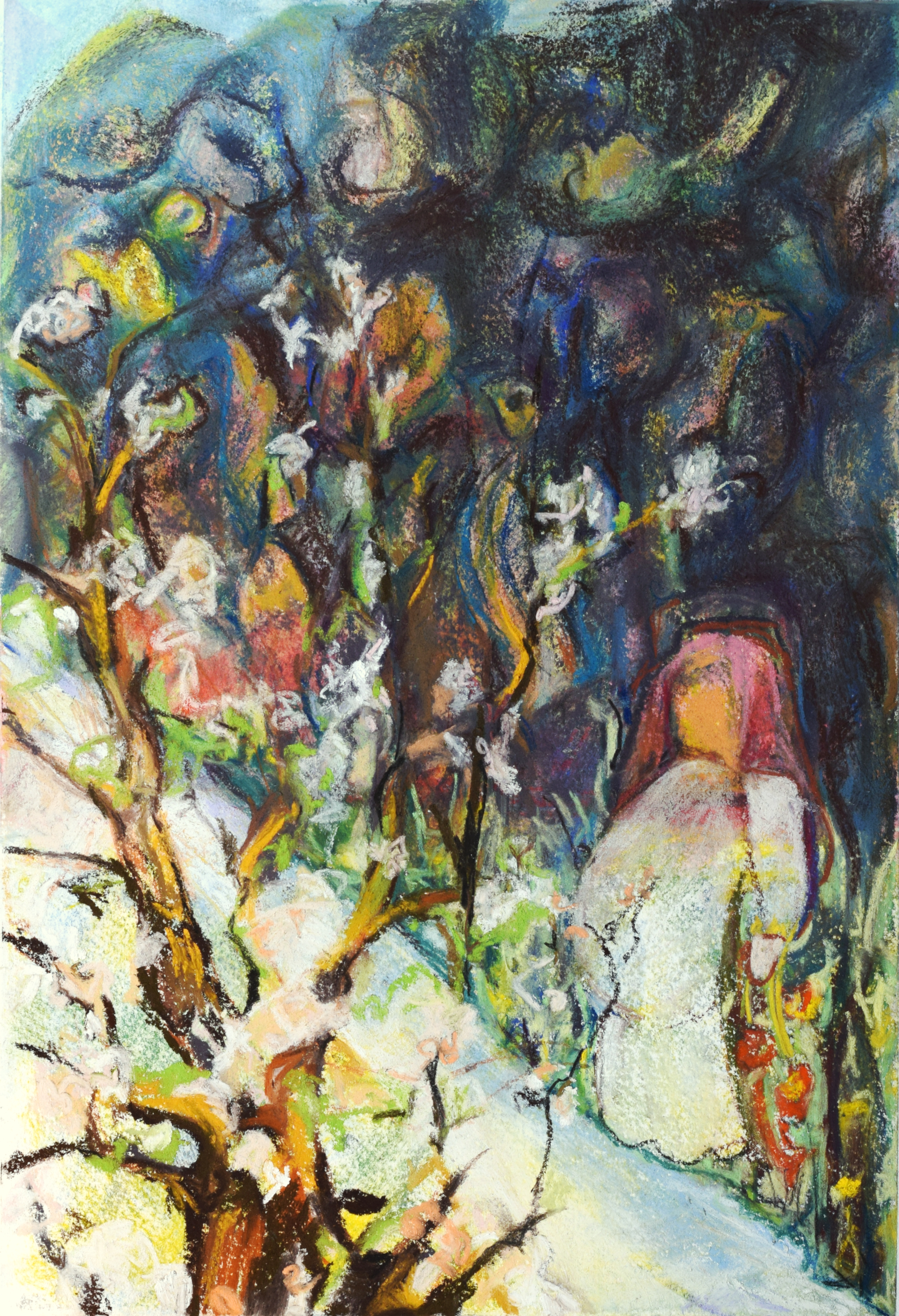 Louteringsberg – Canto 28 Na de zevende omgang komen Dante en Vergilius bij het woud van het aardse paradijs. Een tweestromenland met fris groen gras. Er waait een koele bries. Overal kwetteren vogeltjes. Verder lopend komen ze bij een beekje omzoomd met bonte bloeiende bomen. Aan de overkant loopt een vrouw die zingt en bloemen plukt. Het is Matelda, in leven contesta van Toscane. Het ‘beekje’ blijkt de rivier de Lethe.